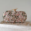 Floral Zardosi Bridal Clutch: Pastel Printed Wedding Clutch With Bird Knob