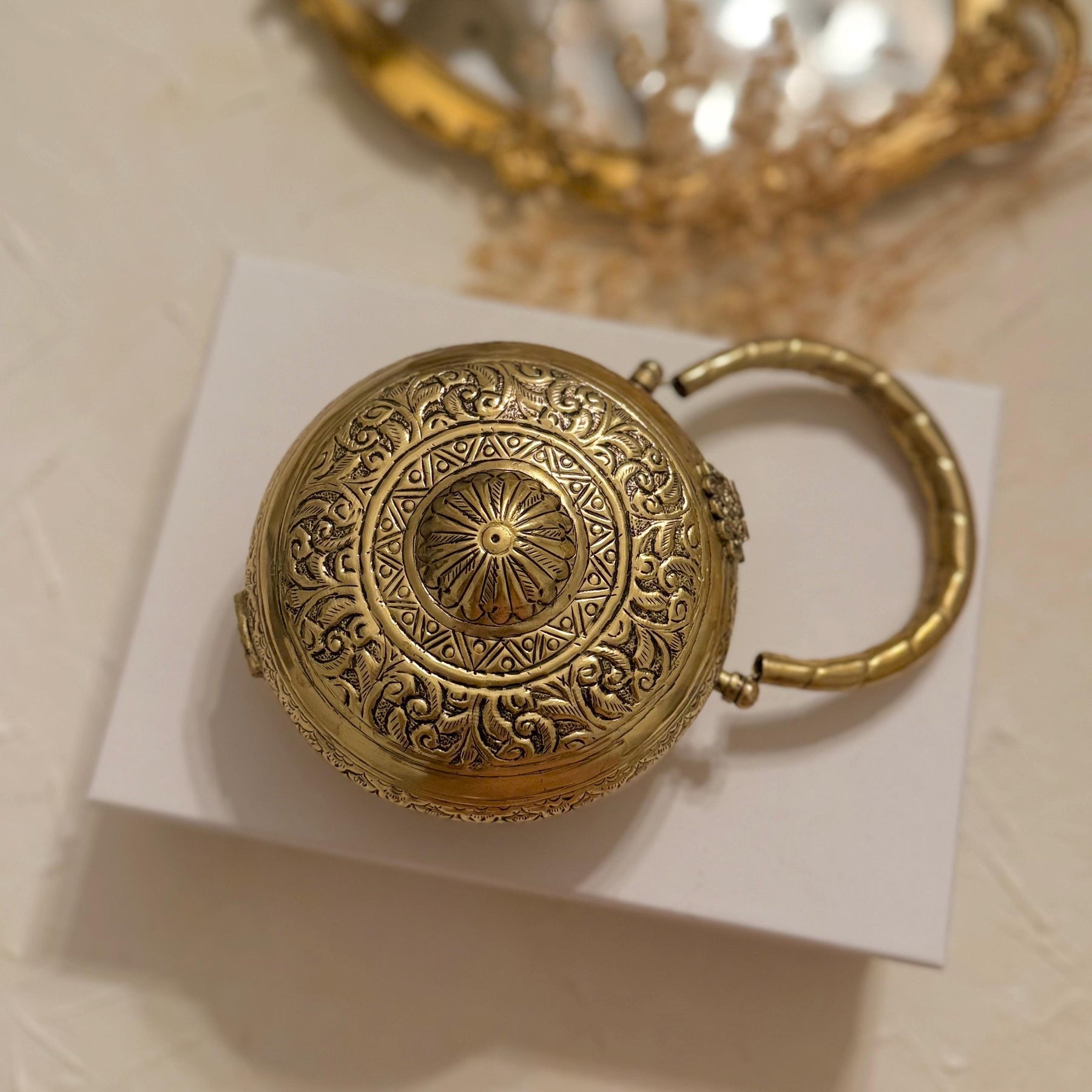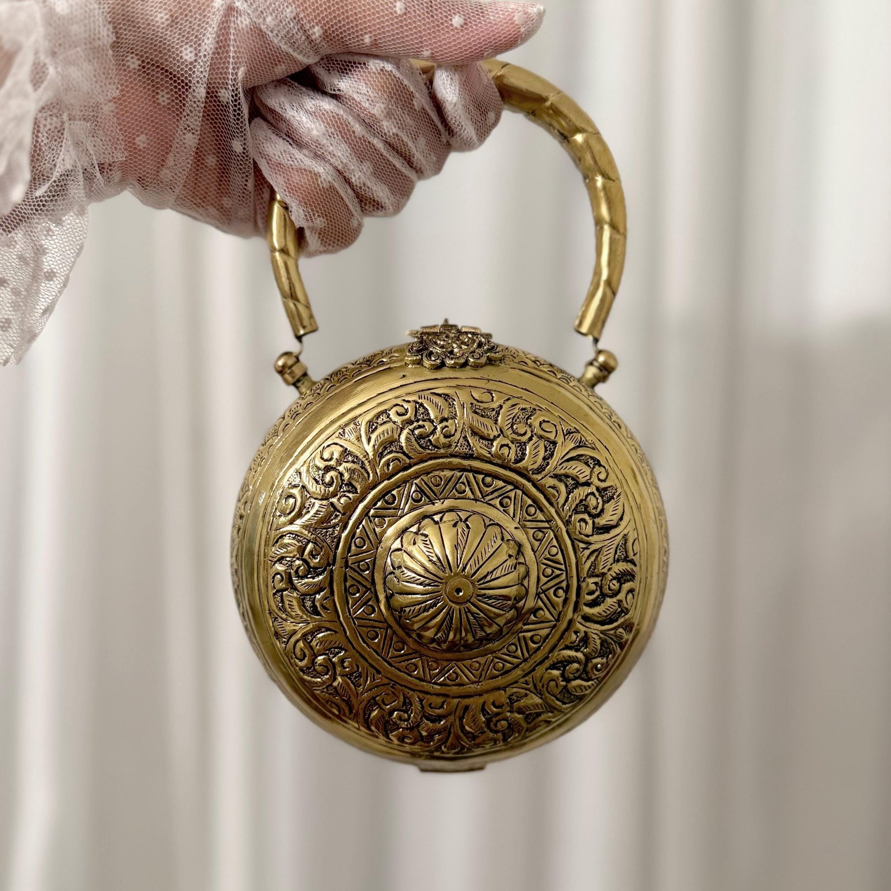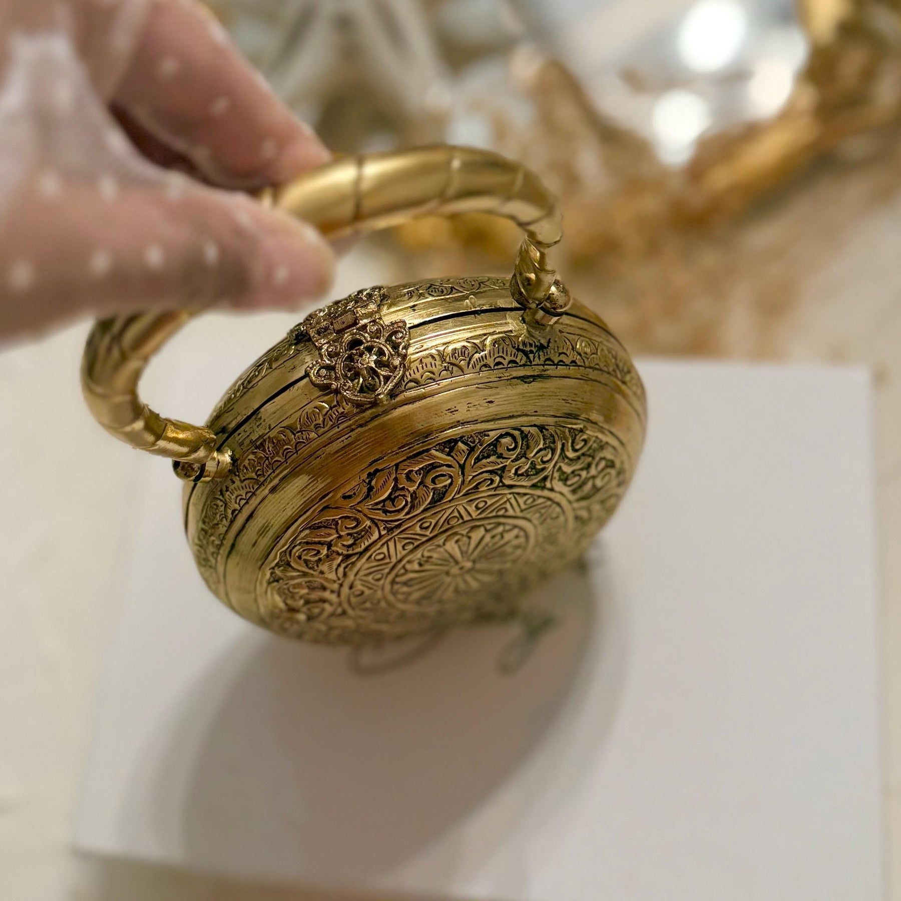 Antique Gold Clutch, 14k Gold Plated Statement Clutch, Top Handle Brass Clutch, Electroplated Clutch, Gift for her, Unique Find