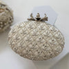 Ivory Raw Silk Bridal Clutch: Zardosi Embroidery, Pearl Flower Knob
