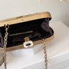 Crafted with a pure brass frame, this clutch offers lasting durability and luxury. The interior is lined with soft suede and features a built-in pocket, providing both style and functionality. To complete the look, a designer gold chain adds versatility, allowing you to carry it effortlessly.