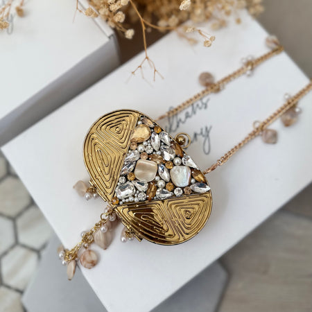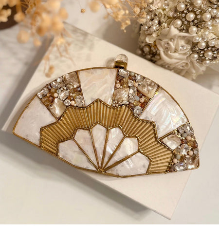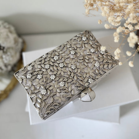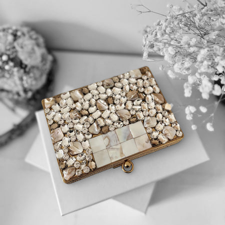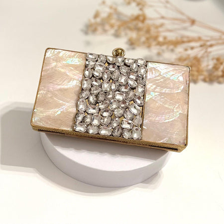 Sold Out Handmade Silver Bridal Clutch: Mother of Pearl & Crystal Evening Bag now $118.00 $130.00 9% off