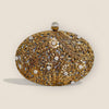 Presenting our gold bridal Clutch—a true masterpiece of elegance. This oval clutch showcases a gold hammerd frame made with pure brass, adorned with genuine mother of pearl and embellished with intricate pearl accents. The brass floral detailing is 14k gold plated and electroplated for lasting durability, adds a refined touch, making this clutch a stunning blend of sophistication and craftsmanship.