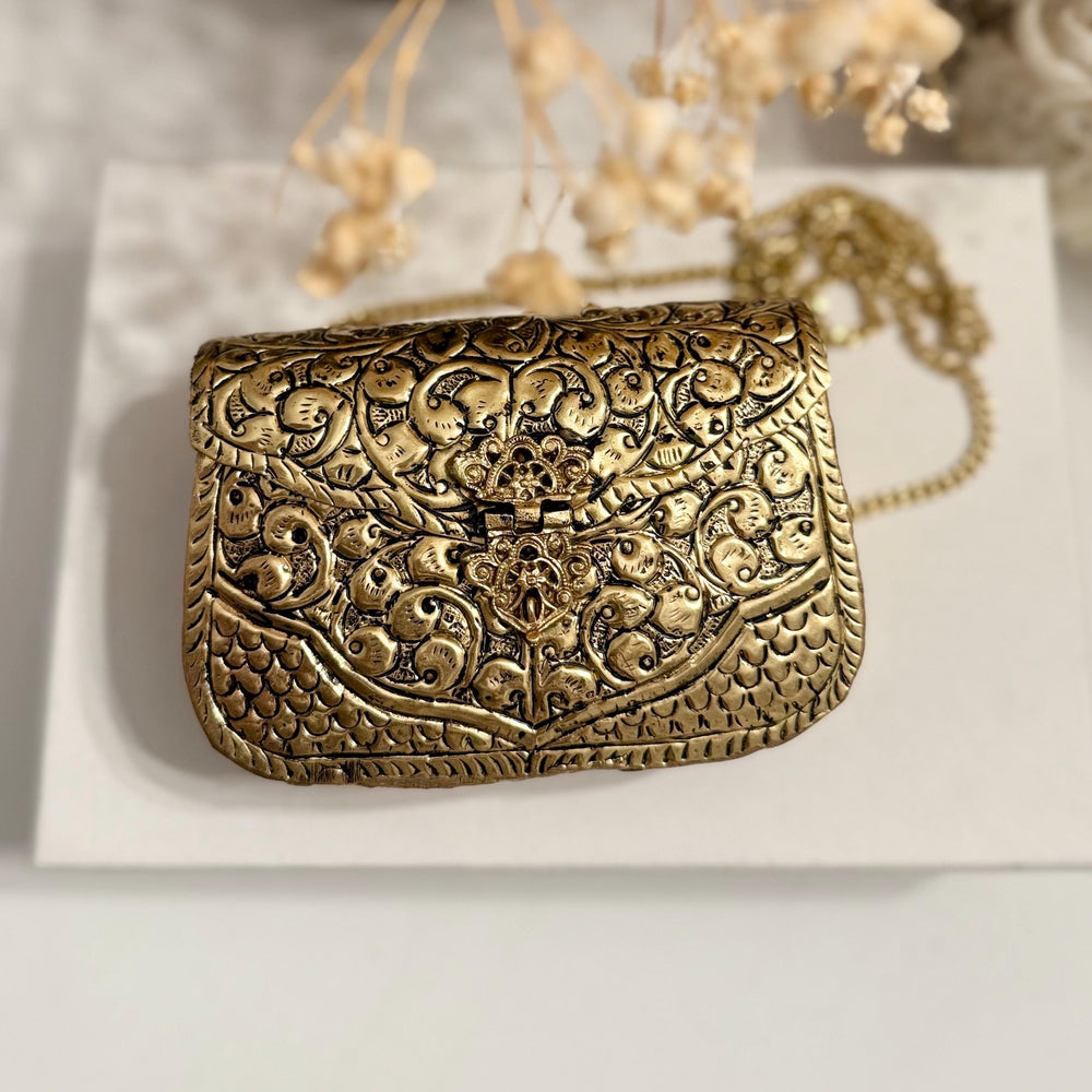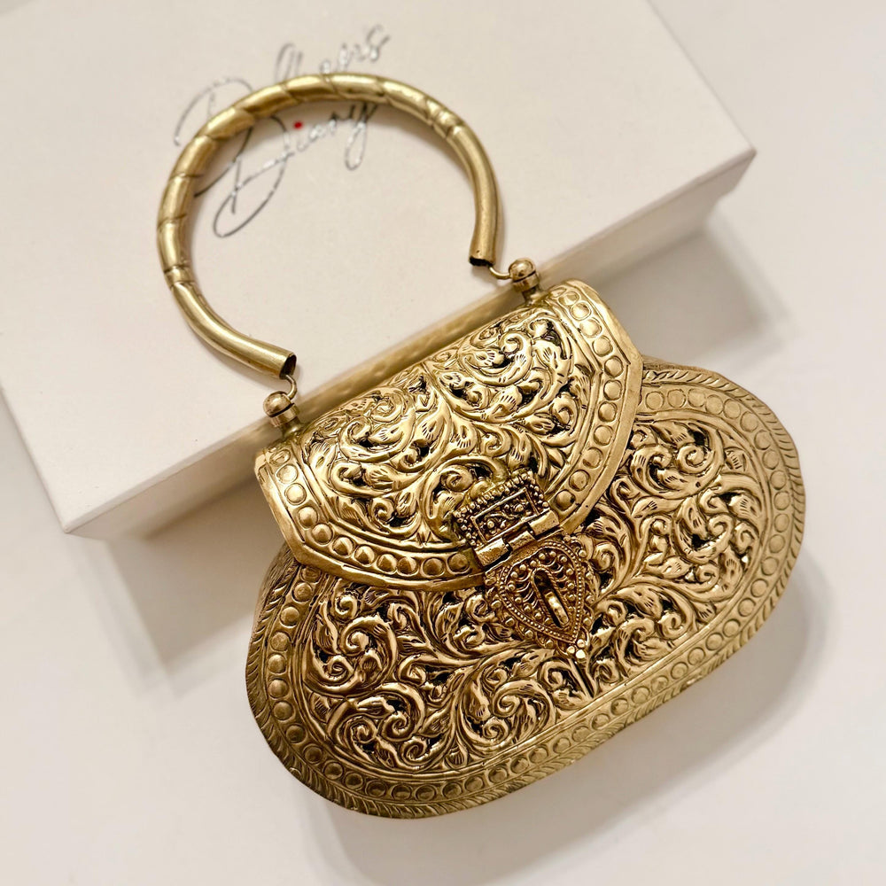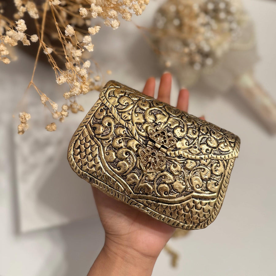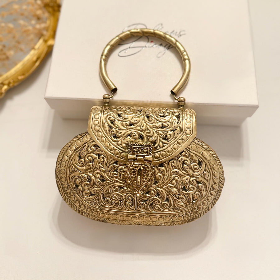 Brass Clutch: Gold Statement Handbag, Indian Vintage Style