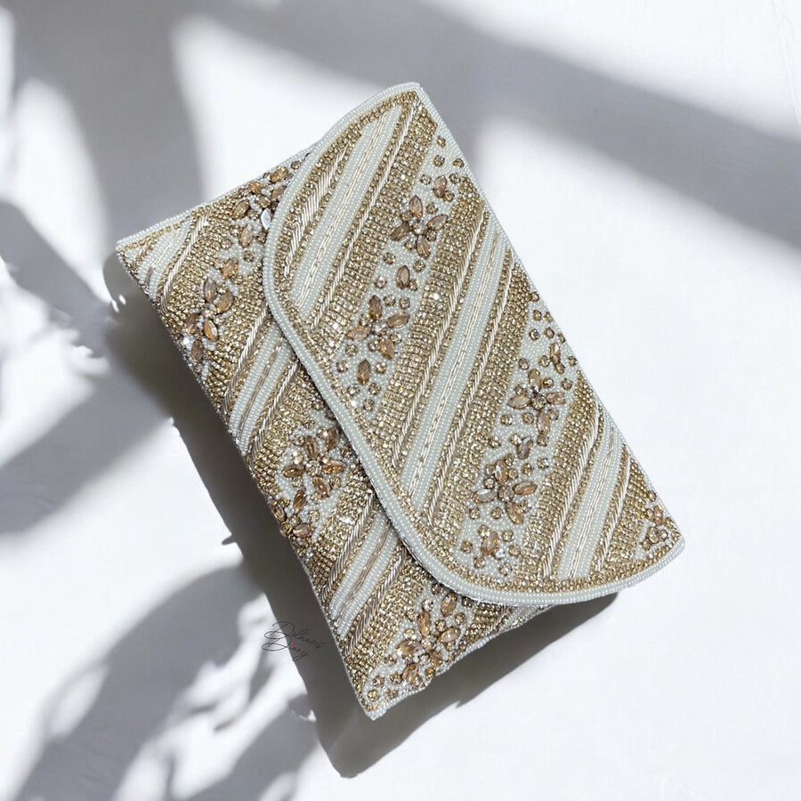Handmade Ivory Beaded Clutch: Bridal Evening Envelope Bag