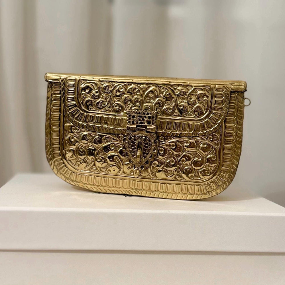 Handmade Gold Plated Brass Clutch: Vintage Style Handbag