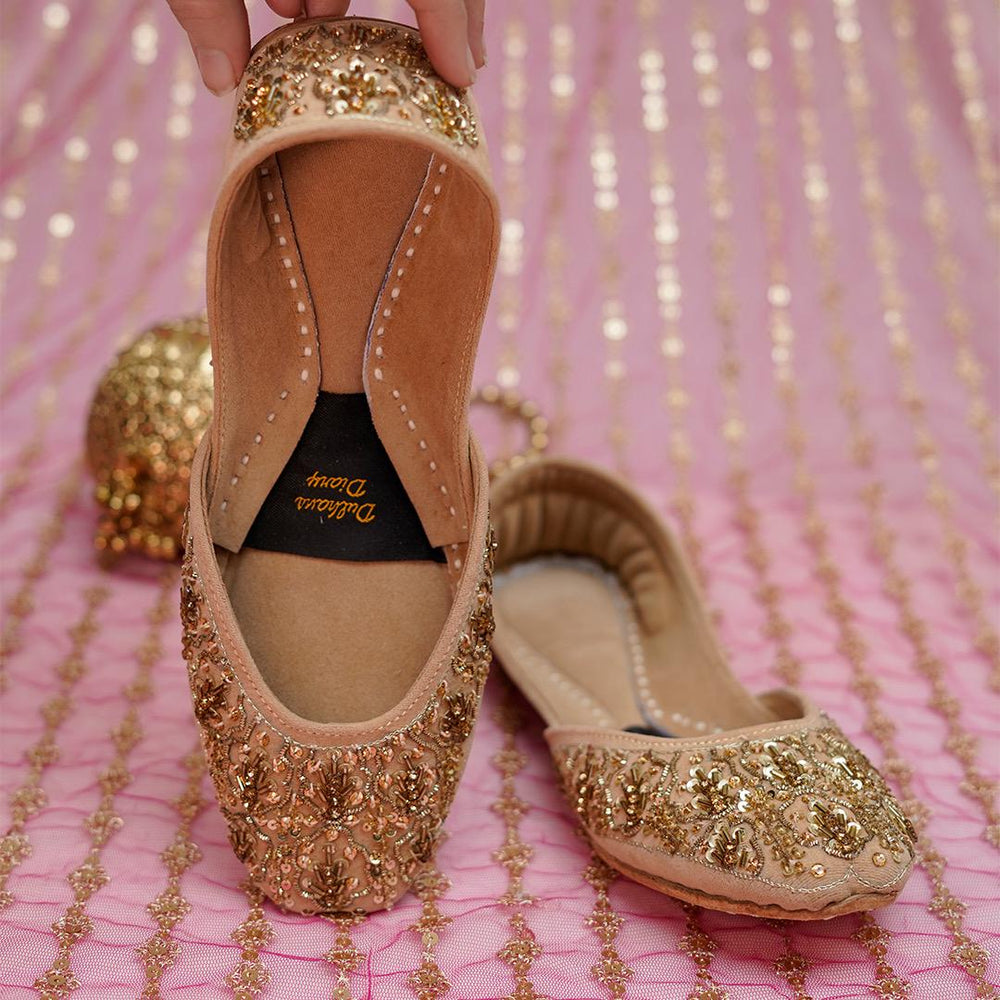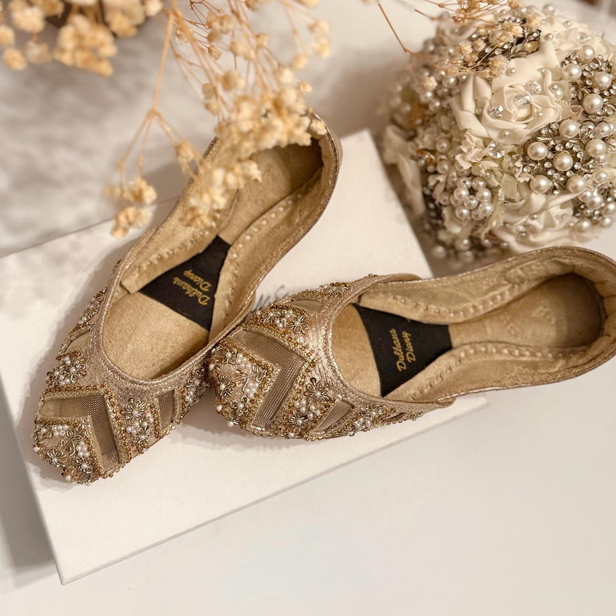 Handmade Gold Bridal Jutti: Cutwork Embroidered Khussa Shoes