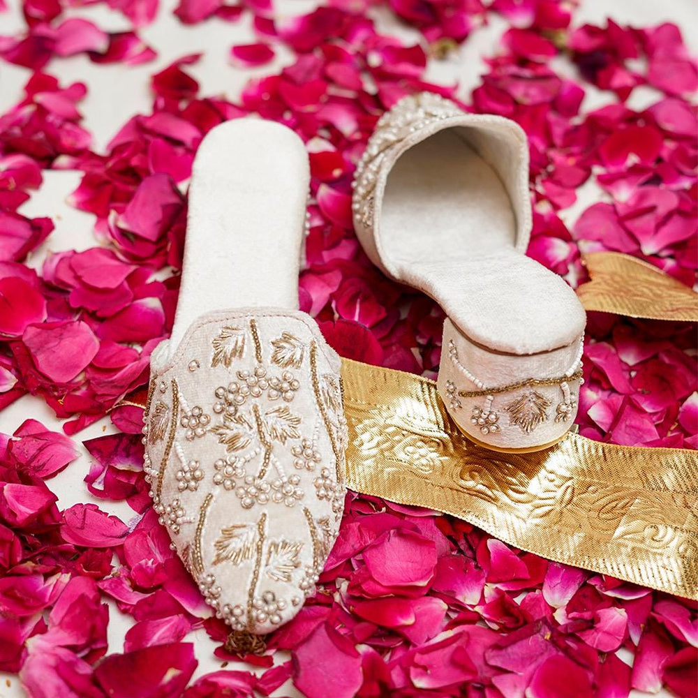 Handmade Ivory Bridal Mules: Beaded Pakistani Wedding Shoes