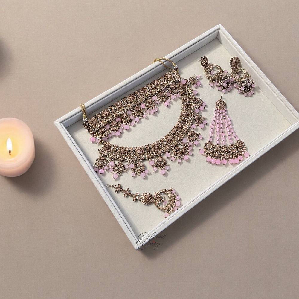 Pink Indian Bridal Necklace Set: Gold Plated Pink Jewelry