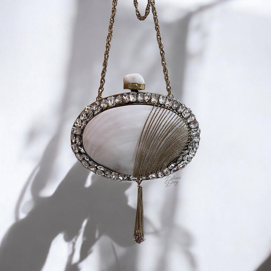 Natural Seashell Clutch: Gold Frame Shell Bag