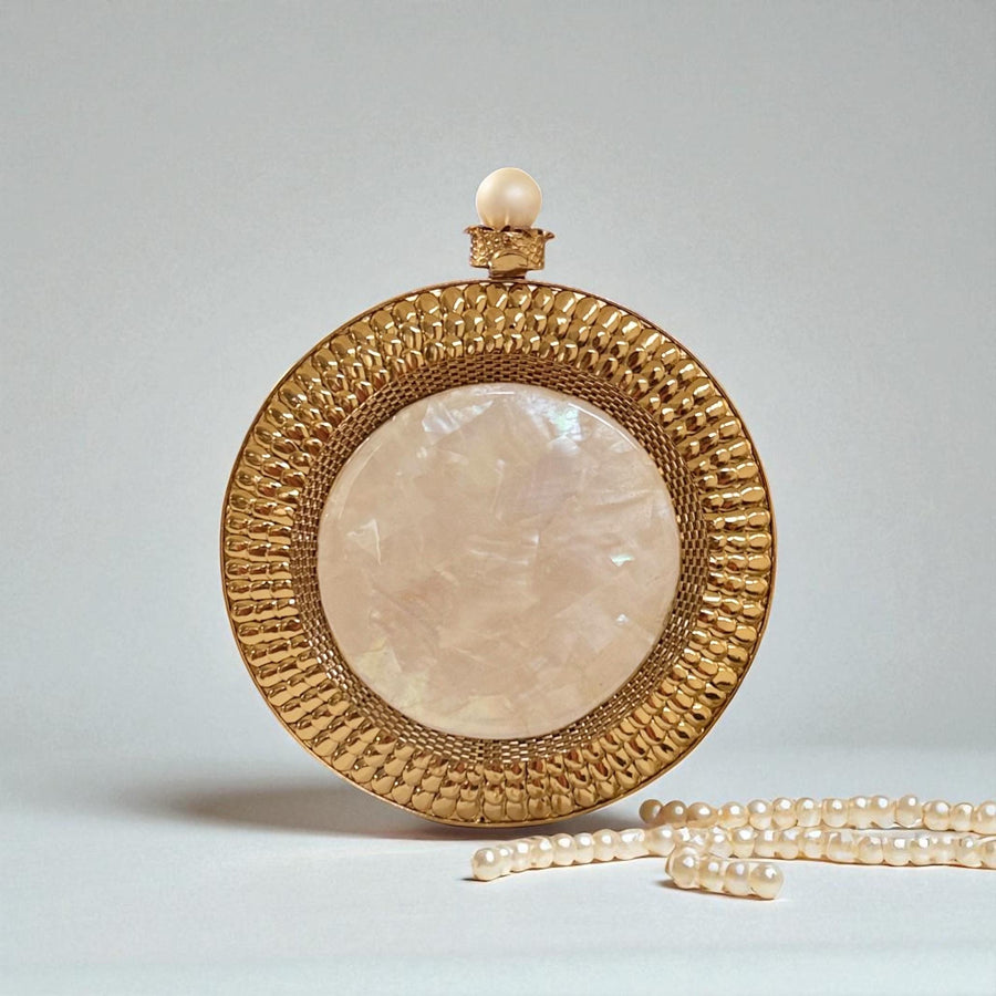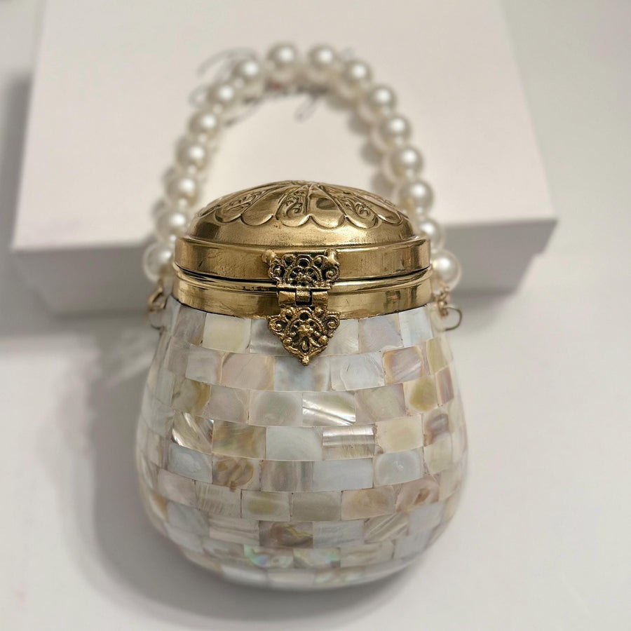 Mother of Pearl Inlay Clutch | Gold Beaded Handle, Shoulder Bag