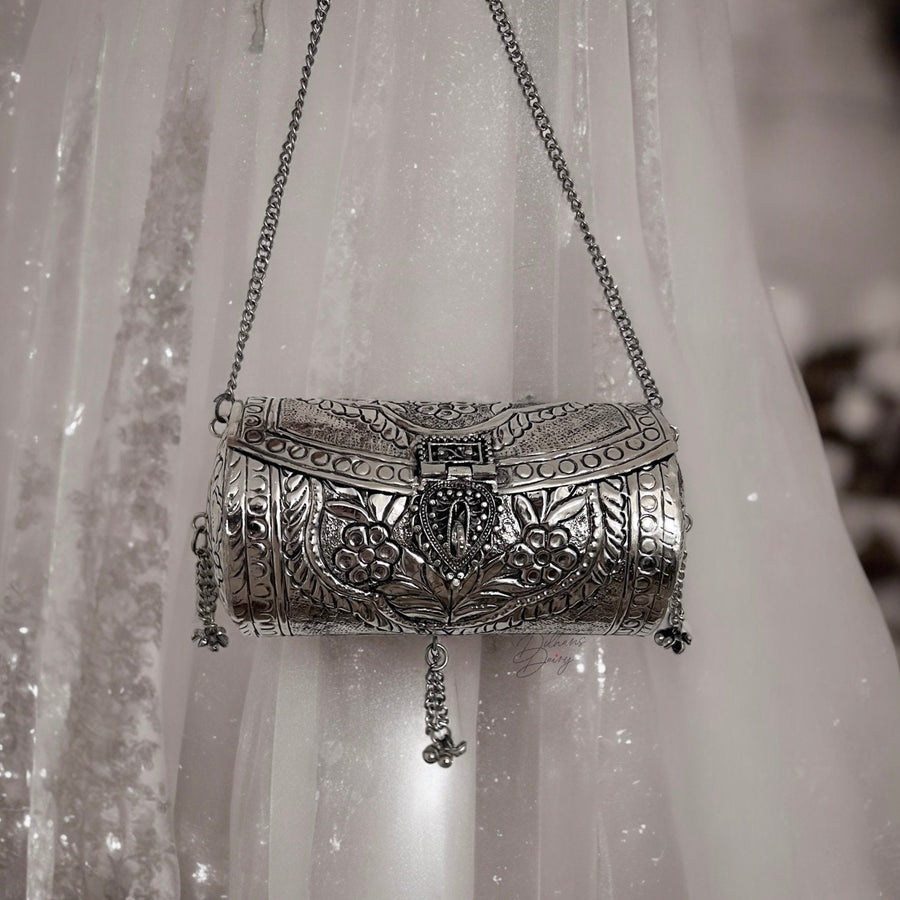 Silver Zardosi Clutch: Raw Silk Bridal Evening Bag