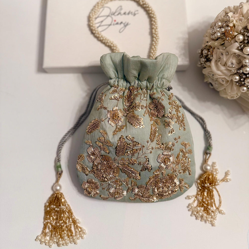 Zardozi Work Bridal Potli Bag: Indian Wedding Evening Bag
