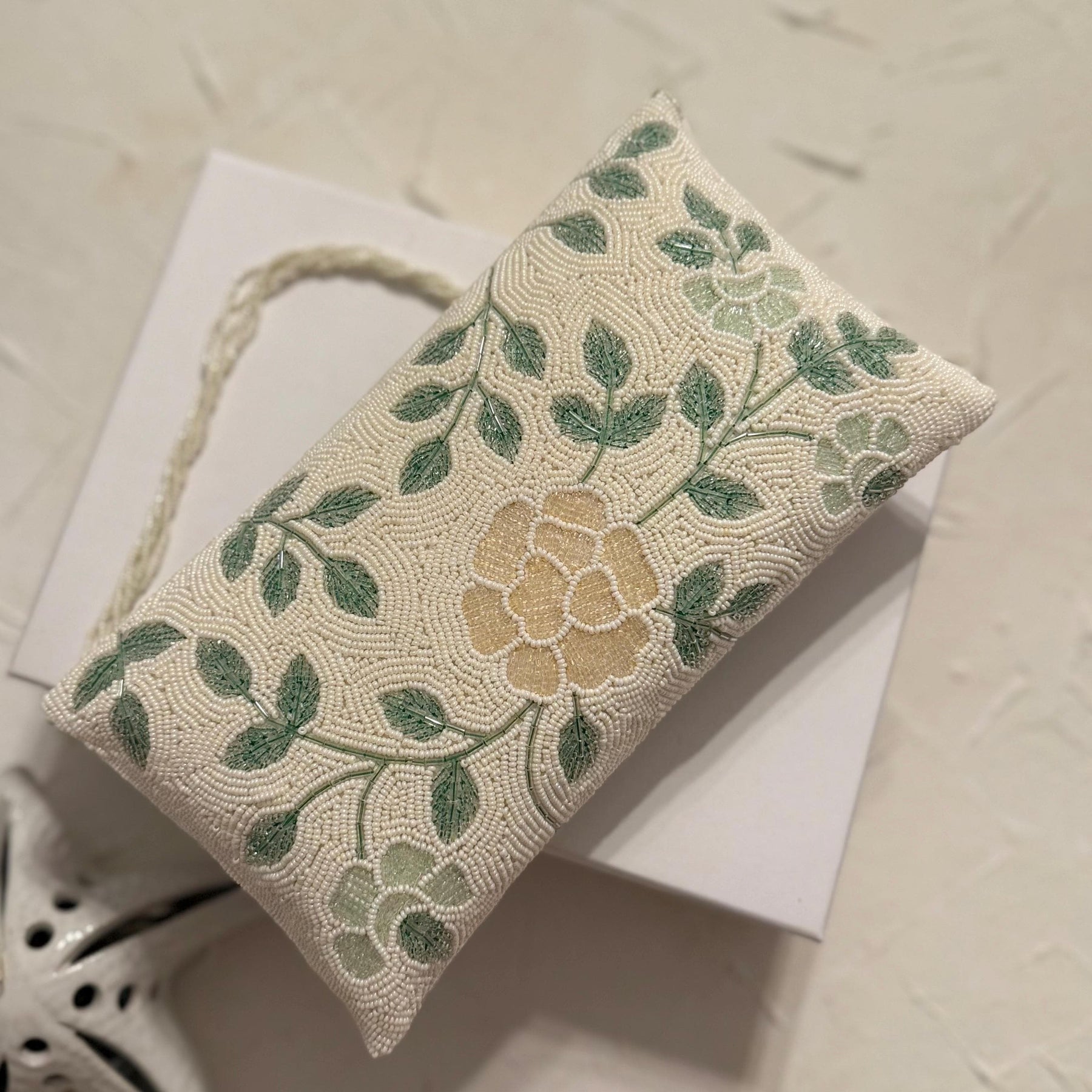 Ivory Clutch, Vacation Clutch, Beaded Floral Clutch, Evening Bag, Brides Purse, Ideal for Weddings and Parties, Clutch Purse, Gift Idea, Christmas Gift,