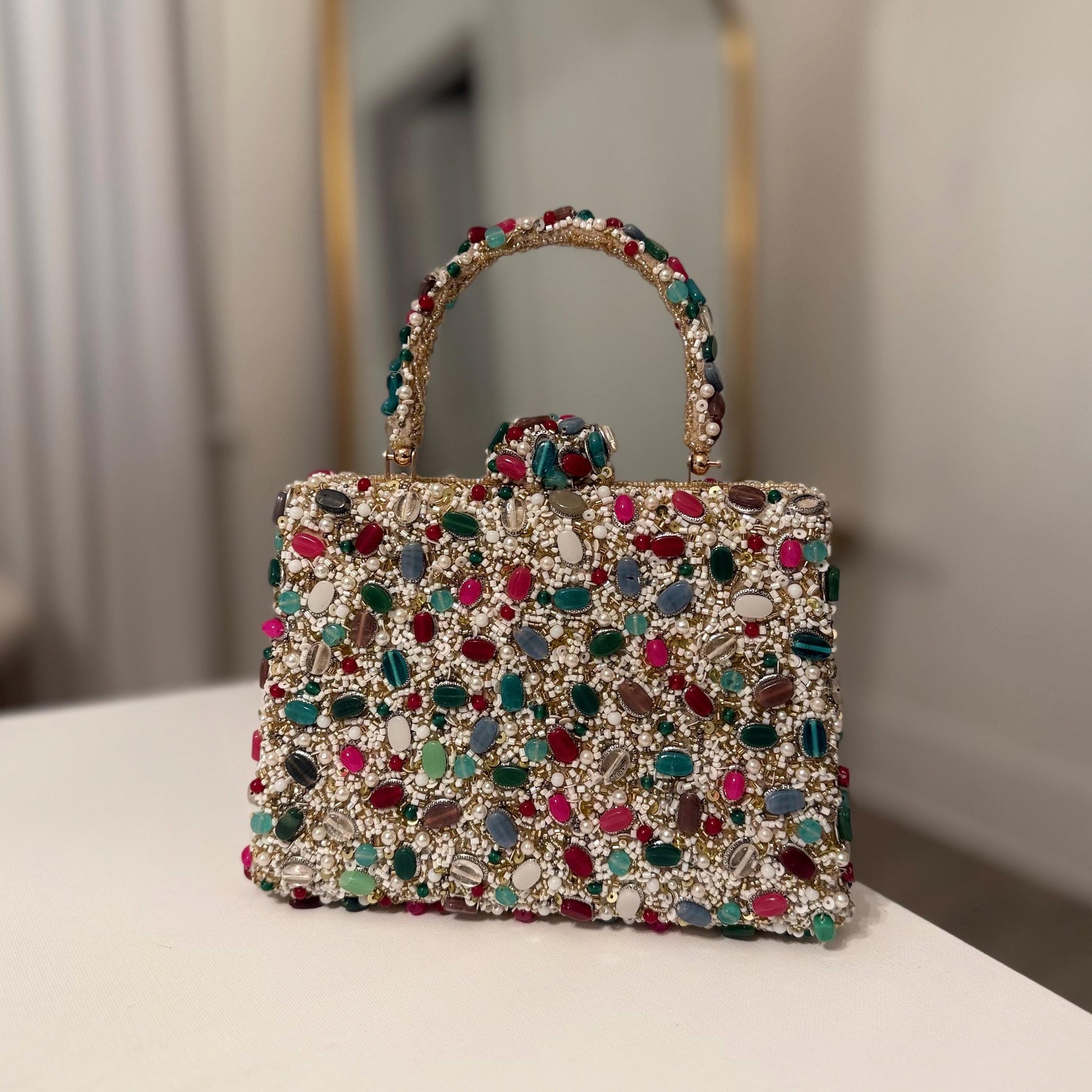 Handmade Multi-Colored Gemstone Top Handle Clutch