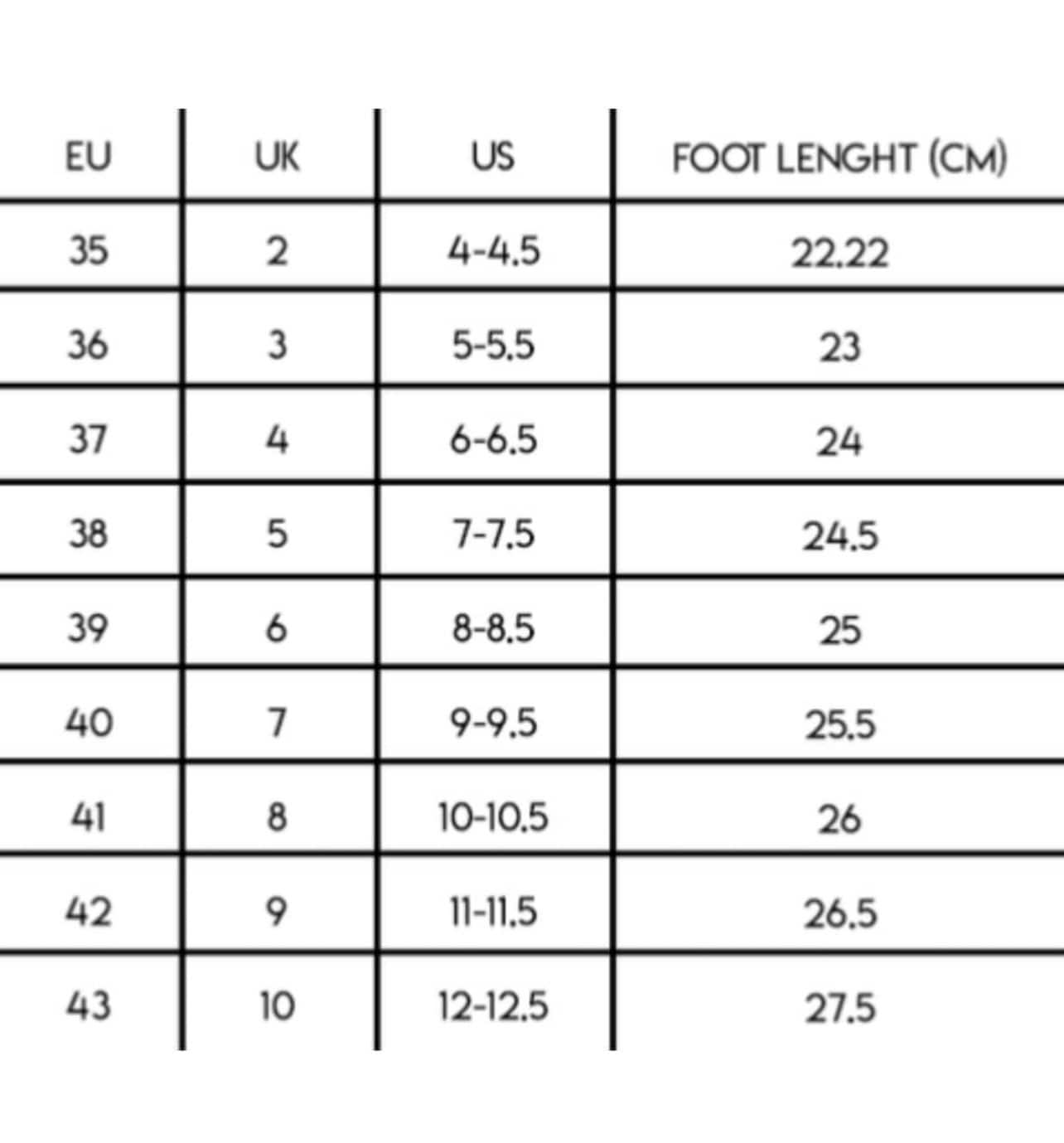 We acknowledge that every customer may have individual foot characteristics. We've included a size chart for your reference. If you're unsure about sizing, please don't hesitate to contact us with any questions or concerns.