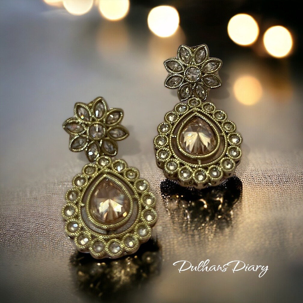 Indian Bridal Necklace Set: Gold Finish Kundan Crystal Jewelry
